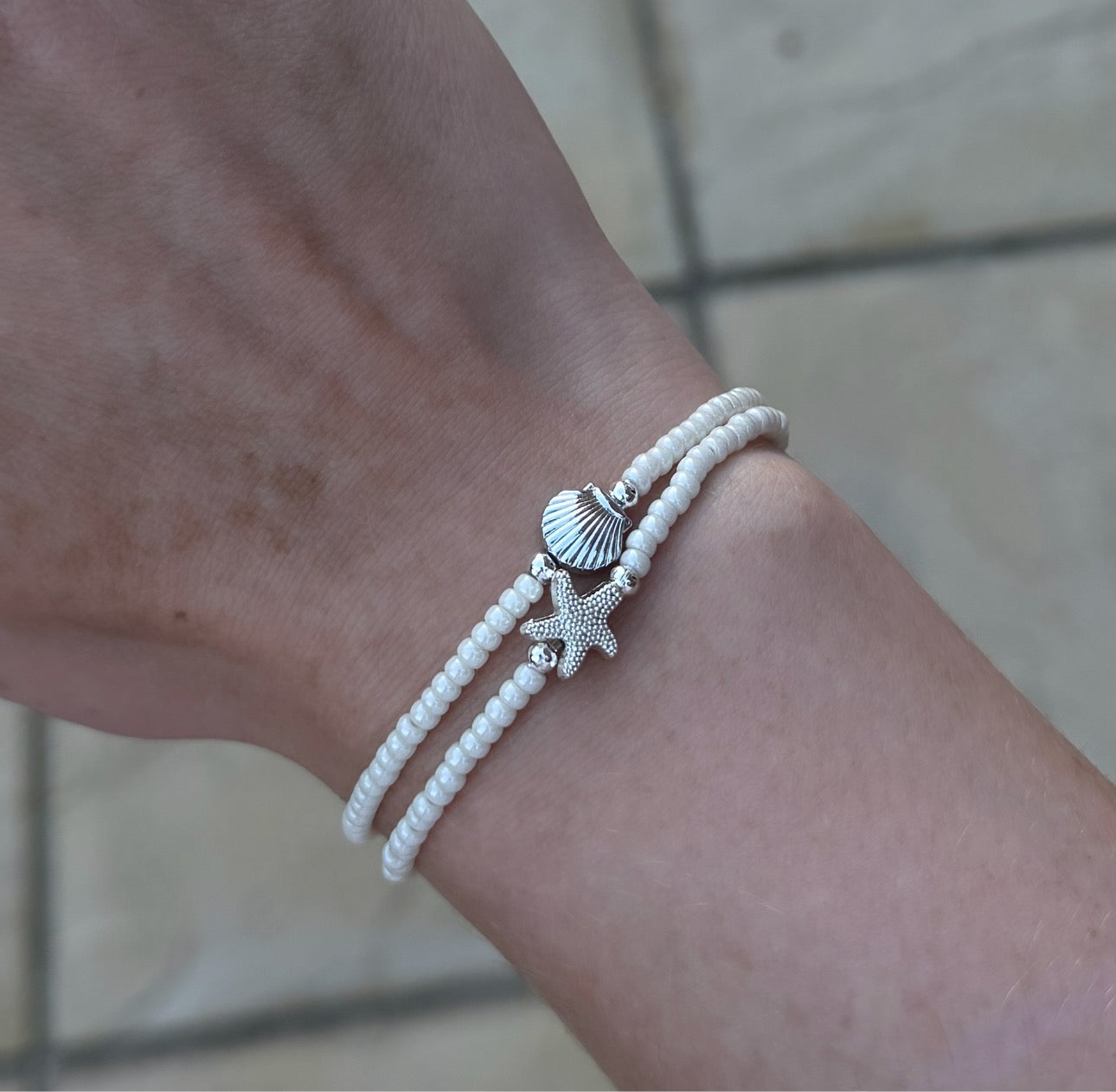 The Beach Bead Duo Stacking Set adds a touch of seaside calm to your everyday stack 🐚