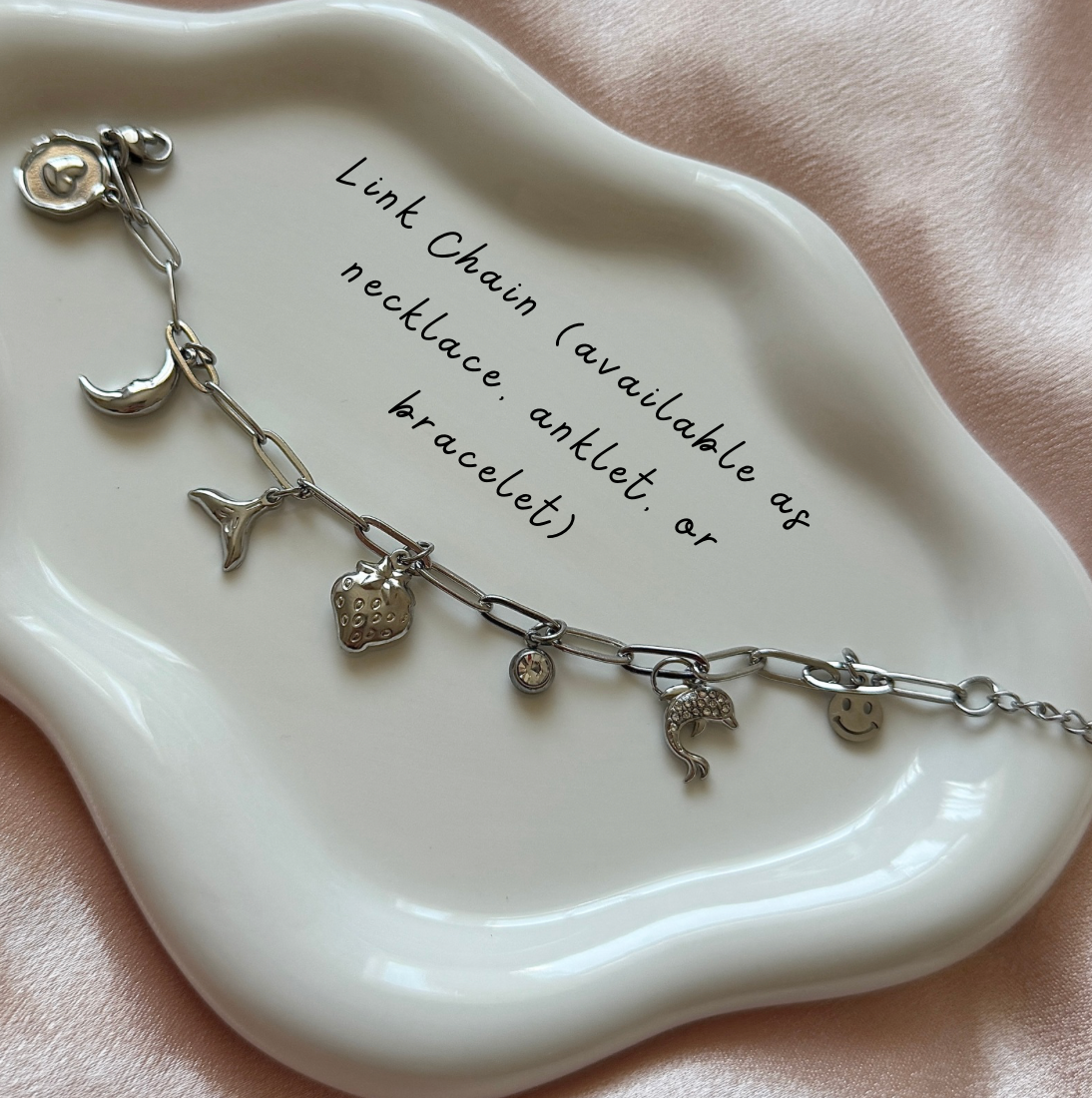 Start with our classic link chain style bracelet, necklace or anklet in gold or silver, or our dainty 1mm classic pendant chain, then customise with your choice of charms – from initials and birthstones to pearls, crystals and meaningful symbols. Each charm is priced separately, so you can build a piece that’s as simple or as statement as you like. Perfect for everyday wear or as a thoughtful personalised gift.