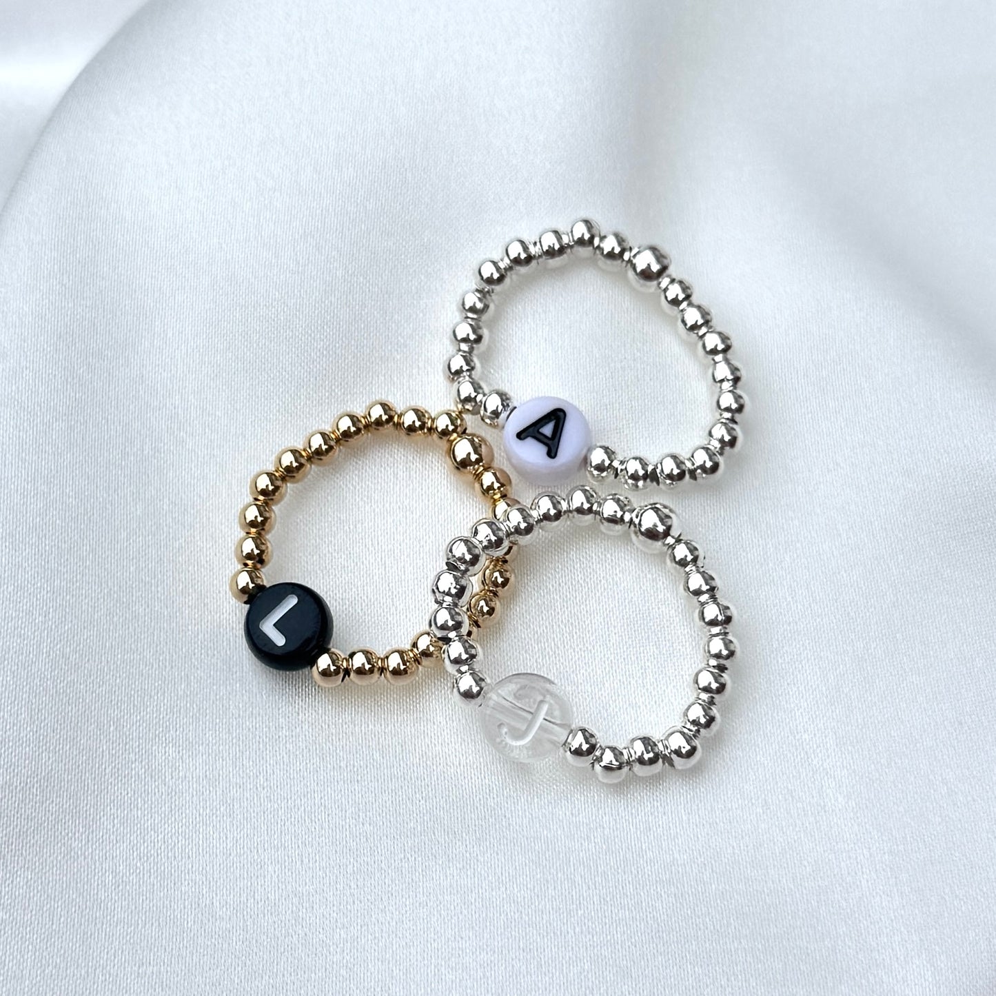 Wear your own initial or a loved one’s with this delicate personalised initial letter ring. Designed with a subtle 3mm beaded band and a timeless letter detail, this custom ring makes a meaningful everyday piece or thoughtful gift.